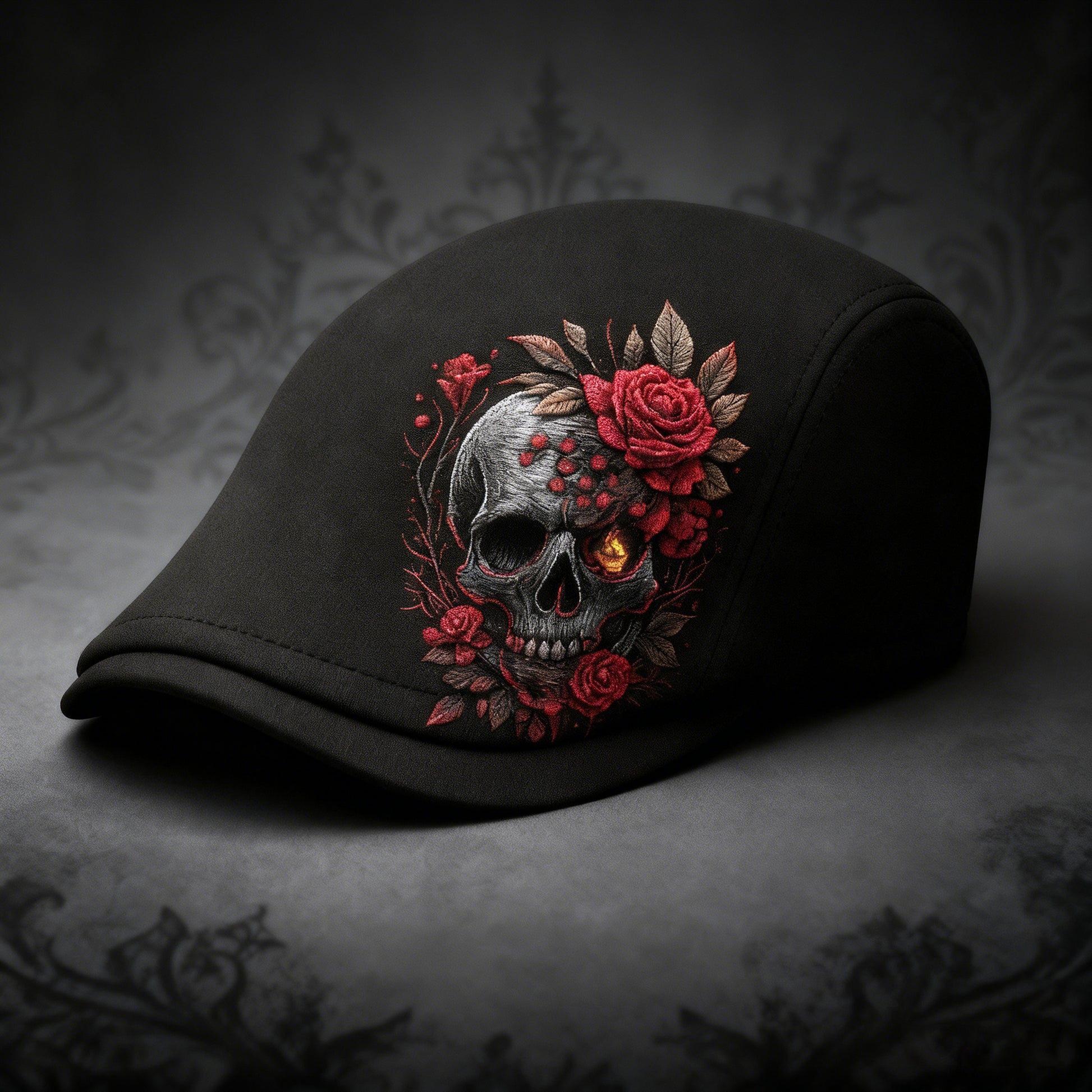 🌹🧢Skull & Thorn Flat Cap