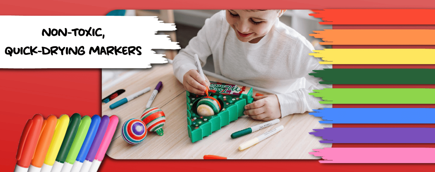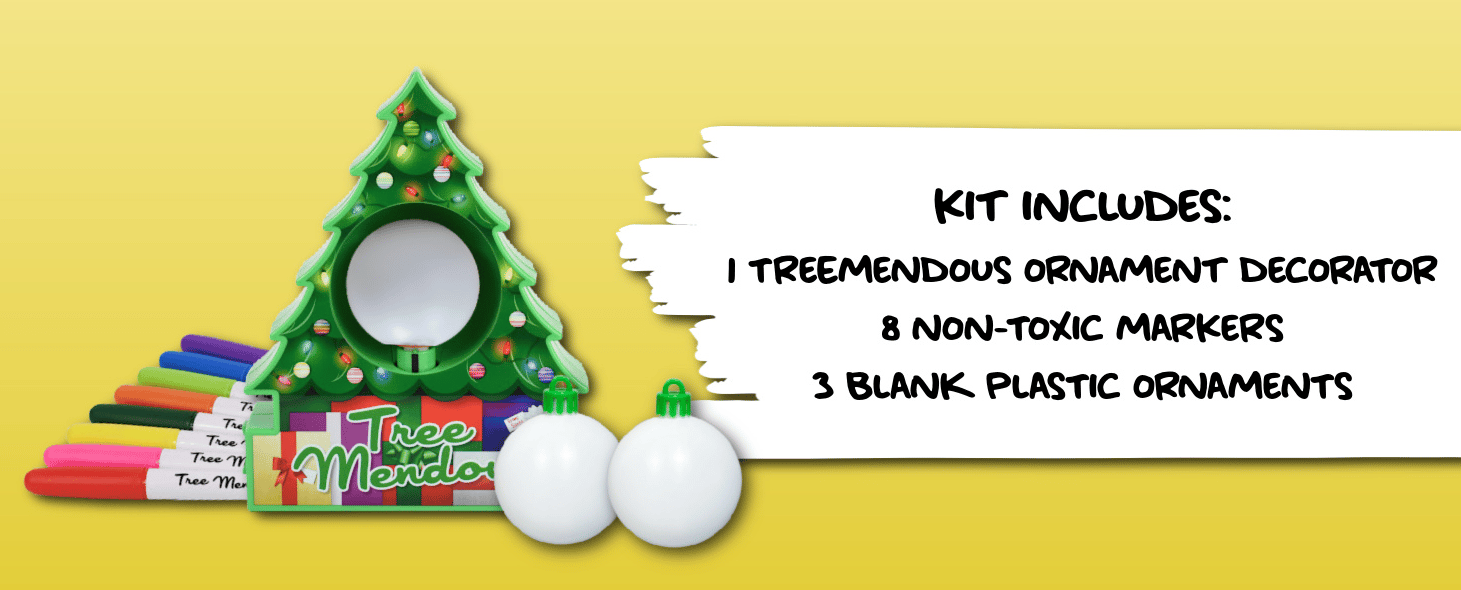 MAKE CUSTOMIZED, COLORFUL CREATIONS: Treemendous comes with three ornaments and a set of 8 nontoxic colorful markers, allowing for many options to create colorful unique ornaments! This combo pack also includes 6 additional ornaments.